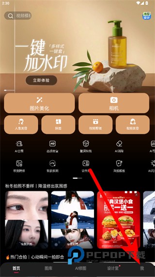 1、打开美图秀秀APP,点击右下角我,进入个人页面。
