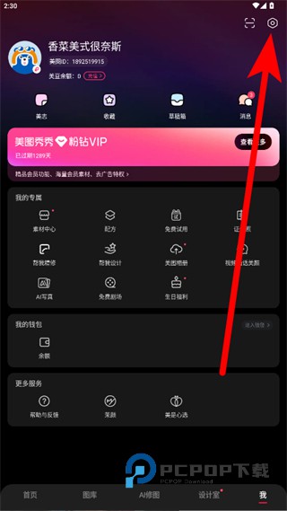 2、在个人页面中点击右上角设置图标,进入设置页面。