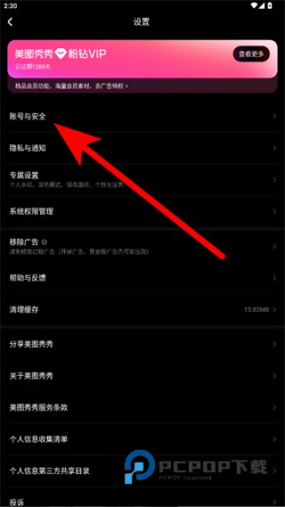3、在设置页面点击账号与安全,进入账号与安全页面。