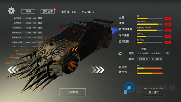 6、获得的金币可以解锁更好的车辆和武器,解锁成就还能获得额外金币。