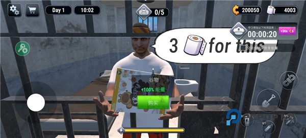 小心狱警的检查——盖好地毯,把挖出的沙子倒进马桶,千万别被发现。获取食物、更好的鞋子和更大的铲子。锻炼身体以增强力量和精力,购买更好的背包,从地下挖出更有价值的物品。