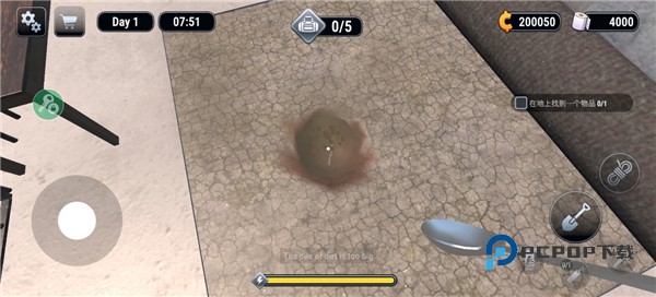 4、同时使用道具开始挖掘,挖掘下面可能有物品。