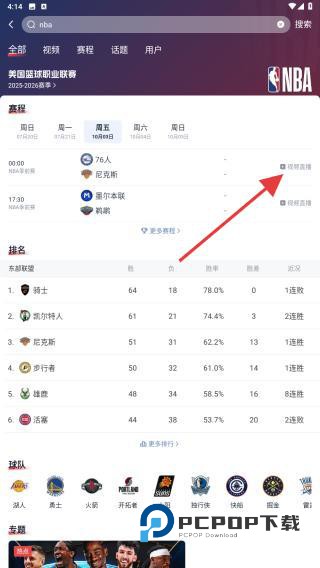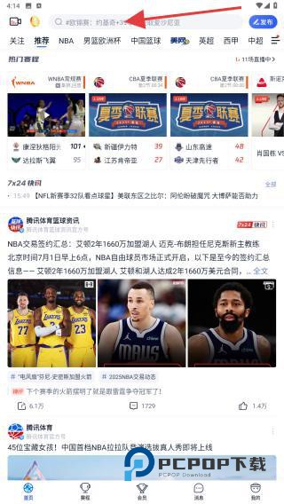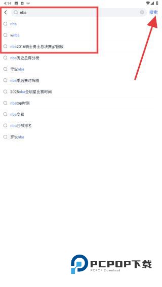 2、根据需求输入精准的关键词,例如:nba,会跳出相关的内容,也可直接点击搜索的按钮。