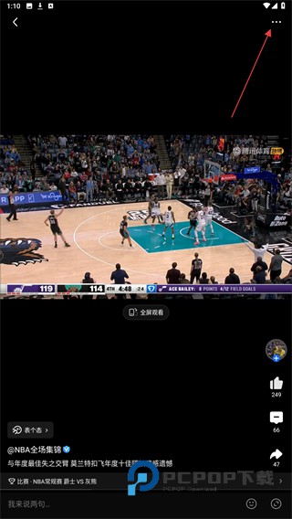 1、在腾讯体育主界面,点击目标内容对应的视频,进入视频播放页面。