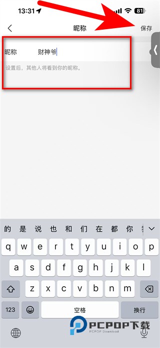 4、在昵称修改页面输入新的昵称如财神爷,点击保存,即可完成支付宝昵称修改。