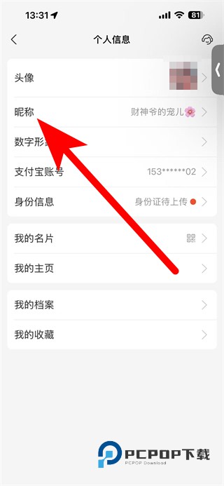 3、在个人信息页面点击昵称,进入昵称修改页面。