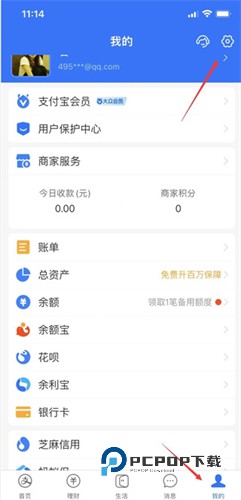 1、下载软件后打开支付宝app,需要点击页面右下角我的,然后进入我的个人中心的界面。