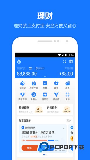 蚂蚁金服旗下的支付宝,是以每个人为中心,拥有超4.5亿实名用户的生活服务平台。目前,支付宝已发展成为融合了支付、生活服务、政务服务、社交、理财、保险、公益等多个场景与行业的开放性平台。除提供便捷的支付、转账、收款等基础功能外,还能快速完成信用卡还款、充话费、缴水电煤等!通过智能语音机器人一步触达上百种生活服务,不仅能享受消费打折,跟好友建群互动,还能轻松理财,累积信用,让生活更简单!