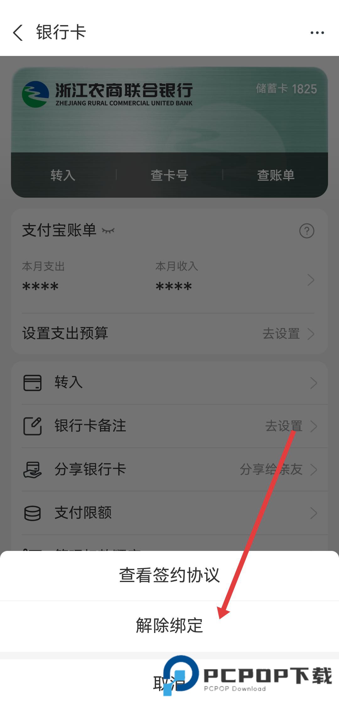 3、在银行卡列表里,点击需要解绑的目标银行卡,进入该卡的详情页面,点击右上角的...弹出解绑的操作界面。