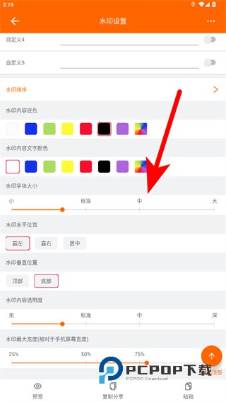 4、根据需求调整水印字体大小、水平及垂直位置、透明度等参数,完成后即可应用修改后的水印信息。