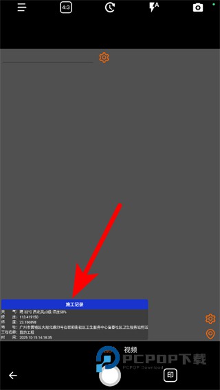 1、打开工程相机APP,在拍摄界面点击下方显示的水印内容区域,进入水印设置页面。