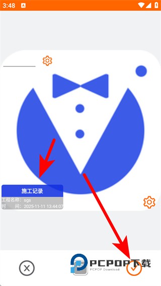 5、照片添加水印后,点击对勾按钮,完成工程照片的水印添加操作。