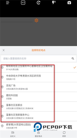 3.进入选择附近地点界面,选择需要的位置,如联和街社区卫生服务中心富春社区卫生服务站等。
