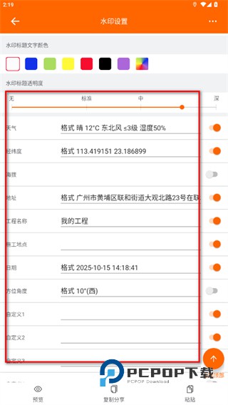 3、继续下滑页面,按需修改天气、经纬度、地址等水印具体显示内容。