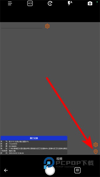 3.工程施工拍照,做施工记号、加水印:记录经纬度,地理位置,天气,工程,时间等信息;