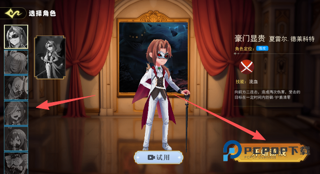 2、从四名初始角色中选择你喜欢的作为通关挑战的人物;