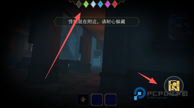 6、成功收集到任务碎片,但因为惊动了怪物,它会根据声音的响动开始抓捕,注意找到物体躲避追捕;