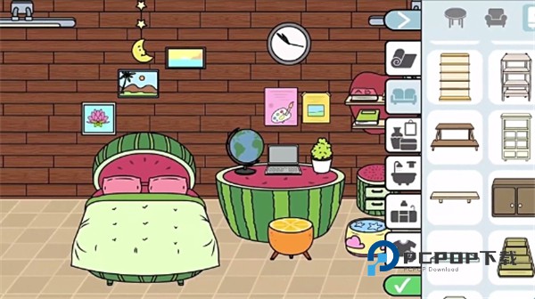 蒂奇小镇(Room Design)是一款卡通风模拟休闲装饰游戏,玩家可以在游戏中尽情释放创意,设计自己的专属梦想生活空间。玩家将从零开始创建自己梦想中的房间,在空空如也的的房间选择各种家具和家居用品,以及彩虹色的墙面颜料,用各种装饰品堆满房间,打造一个完美卧室。