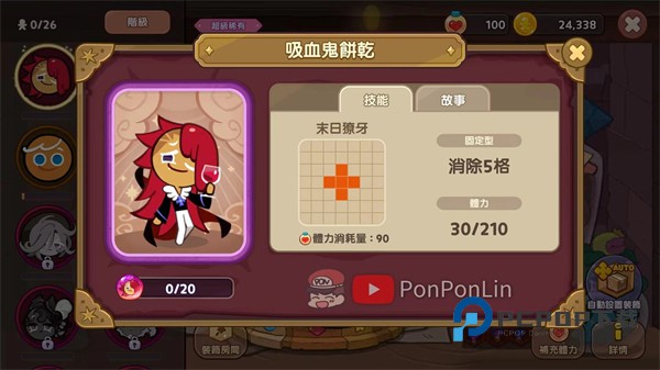 与搭配上场的饼干角色就会与日俱增,根据关卡的不同来搭配1只特殊的饼干上场吧! (上图为吸血鬼饼干能消除固定5格的障碍物)