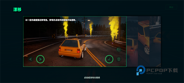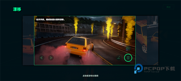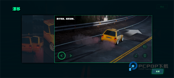 1、以一定的速度接近转弯处,转弯并点击手刹按钮开始漂移