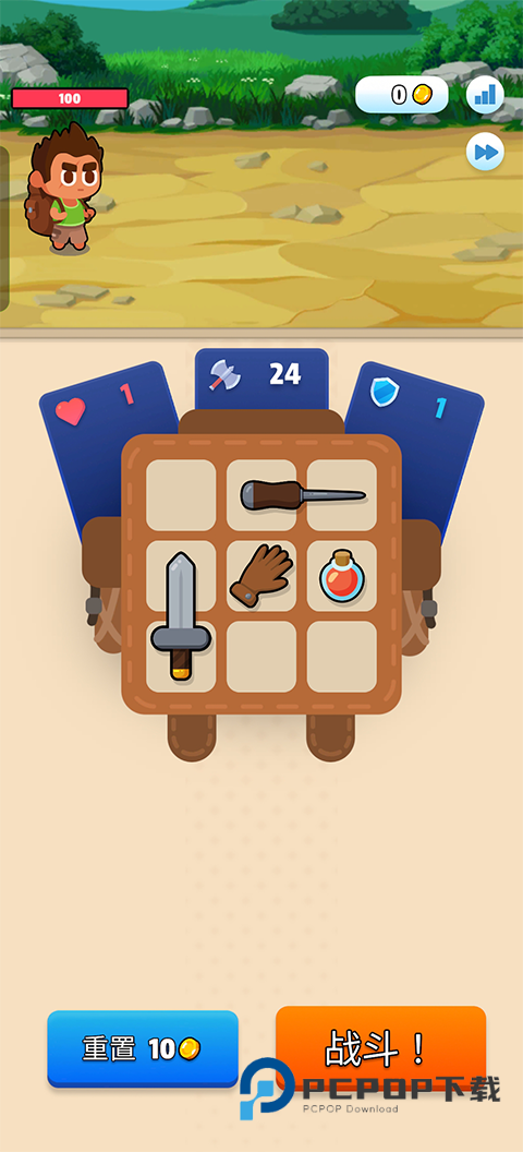 2、然后将所有道具武器都放到背包里面,就可以进入战斗了。