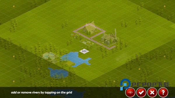 3、建造湖泊:点击左侧锤子按键,再选择水滴按钮,点击屏幕选择建设的位置即可;