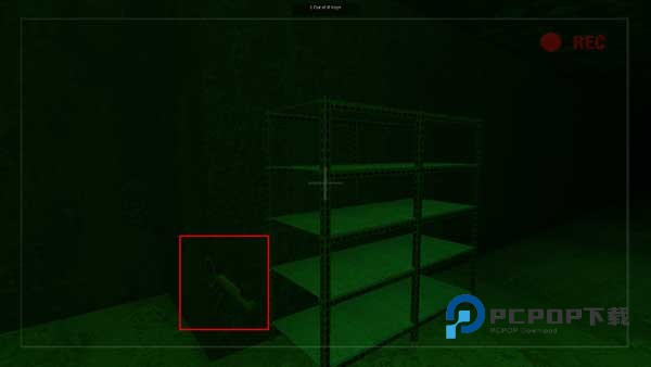 2、前进时遇到架子需要查看是否有道具,将十字准星对准物品即可获取架子上的东西,点击获取桶子左上方的东西。