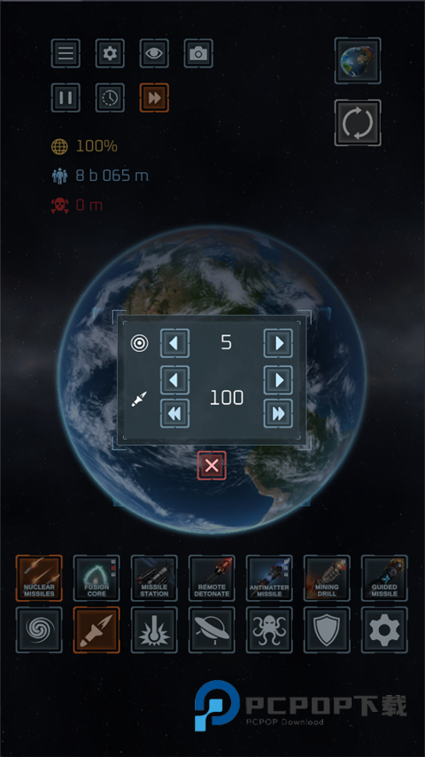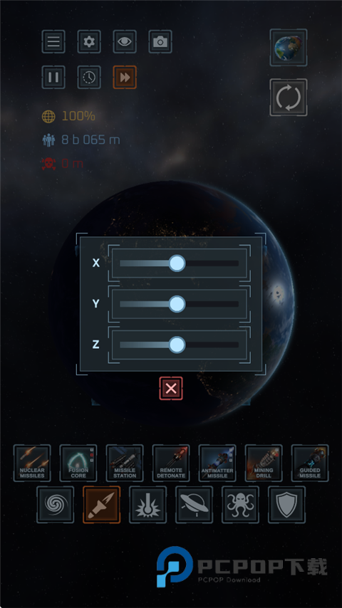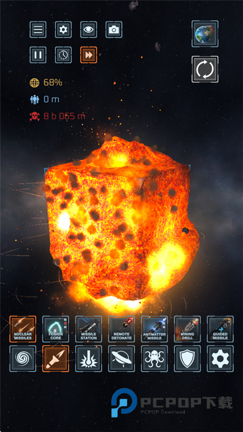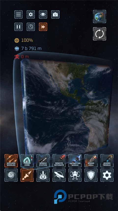 1、打开星球毁灭模拟器游戏,设置一个地球。
