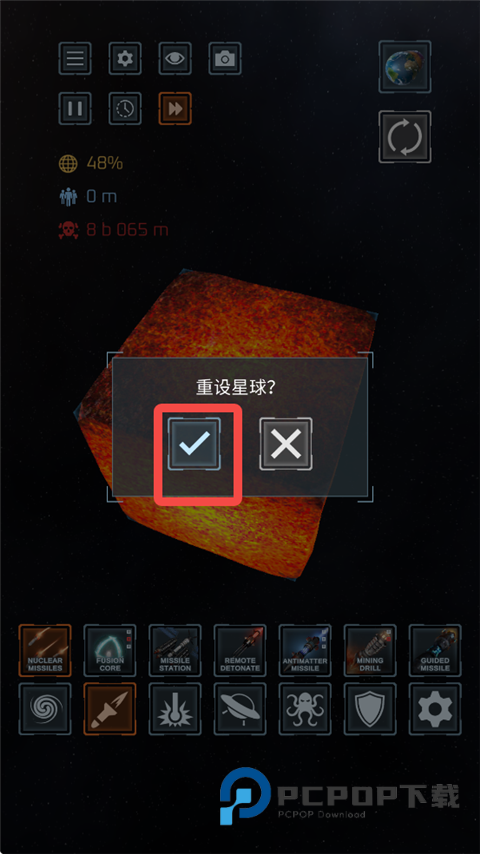 6、然后重设星球。