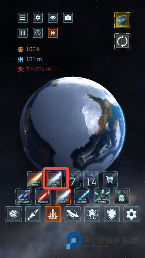 2、用这个冷冻射线射向地球。