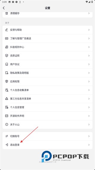 4、在设置页面内,向下滑动找到退出登录的选项并点击。