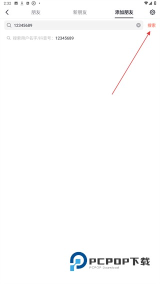 4、在添加朋友下,输入抖音号再点击右侧搜索的按钮。