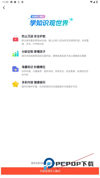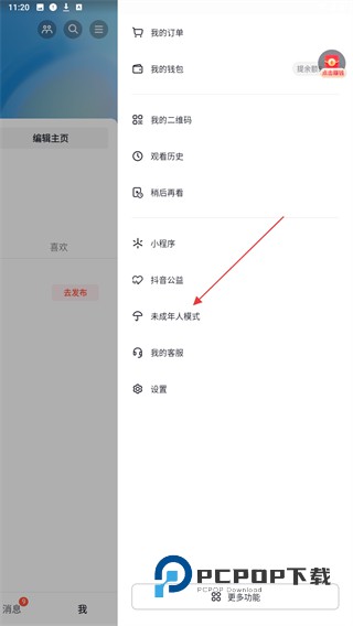 3、在右侧弹出的菜单栏中,点击未成年人模式的按钮。