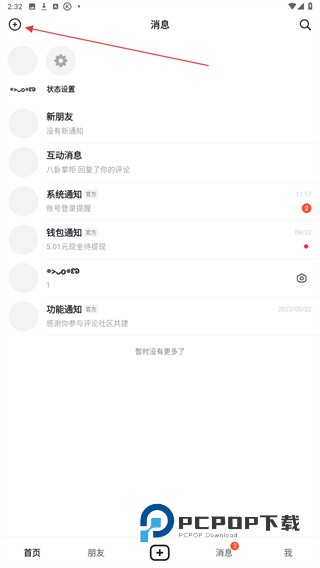2、进入消息的页面内,点击左上角+的功能按钮。