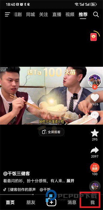 3、获得的火苗可以在个人主页看到,需要点击首页右下角的【我】,进入到个人主页之中;