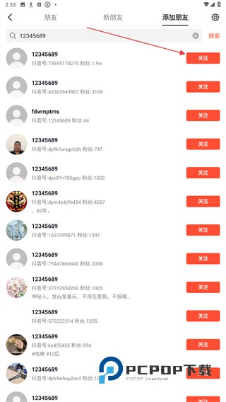 5、当结果出来后,找到对应目标人物点击关注即可添加成功。