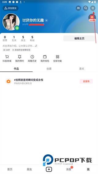 2、在个人中心的页面,点击右上角的菜单按钮,展开功能列表。
