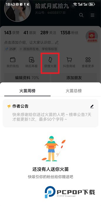4、在个人主页中就可以看到【获赠火苗】点击就可以查看到获赠的火苗数量。