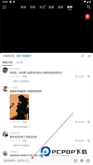 2、当界面弹出评论栏,点击最下方的输入框激活输入法。