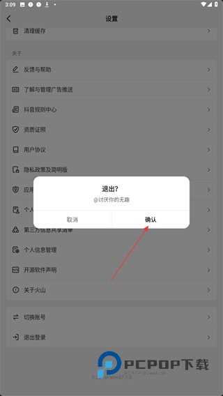 5、此时会弹出退出的确认弹窗,点击确认按钮,即可完成。