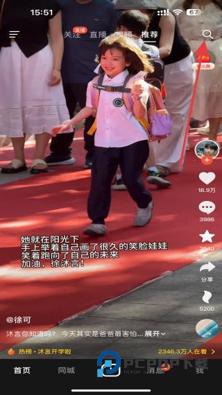 1、打开抖音APP进入到首页内,用户需点击右上角的搜索图标。