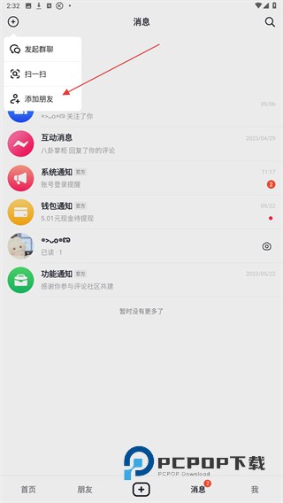 3、在弹出的菜单栏中,找到并点击添加朋友的按钮。
