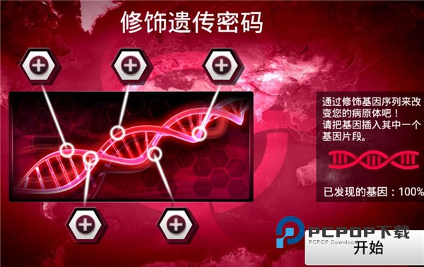 3、游戏中玩家没过一段时间会获得一定的DNA点数,玩家可以使用DNA点数在不同的标签下进行基因进化解锁,解锁更多或者更高级的能力或者传播方式