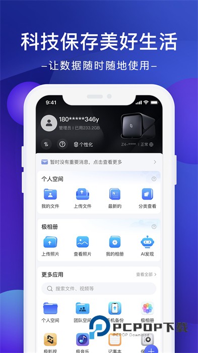 极空间是天顶星公司推出的一款家庭私有云产品,产品可以帮你把手机、电脑、平板上的照片、视频和各种文件自动备份到你的私有硬盘上,防止重要数据丢失。同时,极空间提供随时随地,各种网络状态下的在线照片浏览、在线视频观看服务,解决U盘、硬盘无法随时浏览观看的痛点。作为一款家庭私有云产品,极空间拥有多重数据安全及私隐保证机制,包括重要数据双备份功能、账号异常登录报警、双系统防宕机机制、多账号内容隔离机制、运行异常远程关机、安全黑名单机制、硬盘异常报警等。极空间独创的系统级ZUI,化繁为简。一个APP解决所有问题,多种服务一站式提供,无需切换,一键自动备份,让高深的云系统平易近人,简单上手。