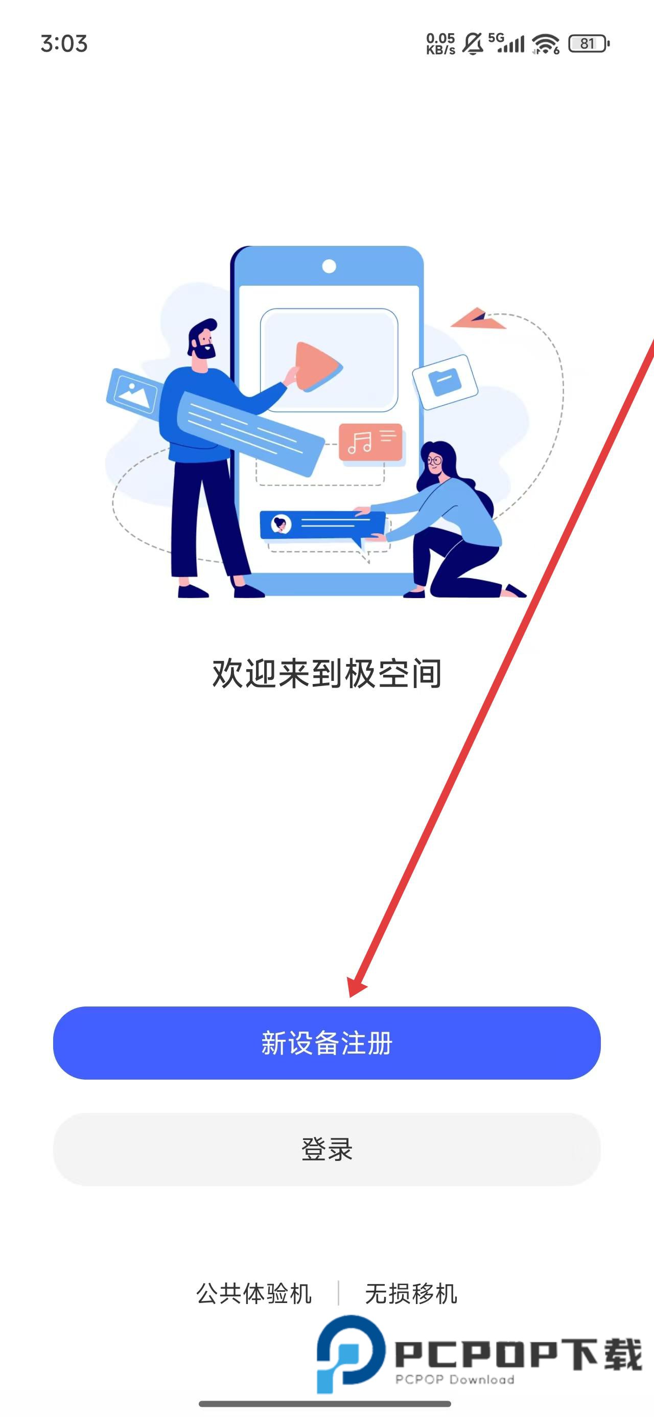 1、在进入到app后,如果没有账号可以点击新设备注册按钮,进行注册。