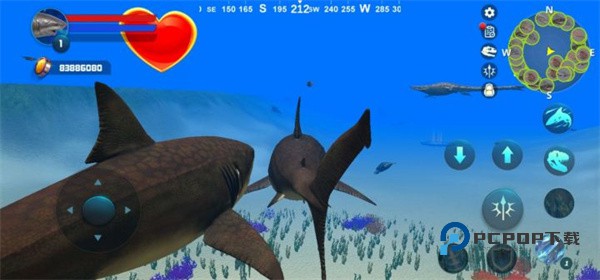 3、操作很简单,左边是控制鲨鱼的方向,右边则是技能和攻击等操作了;