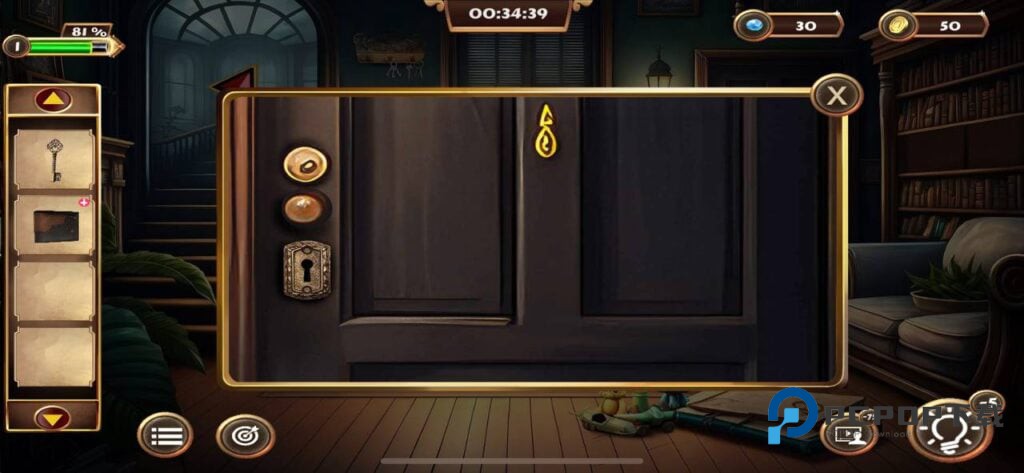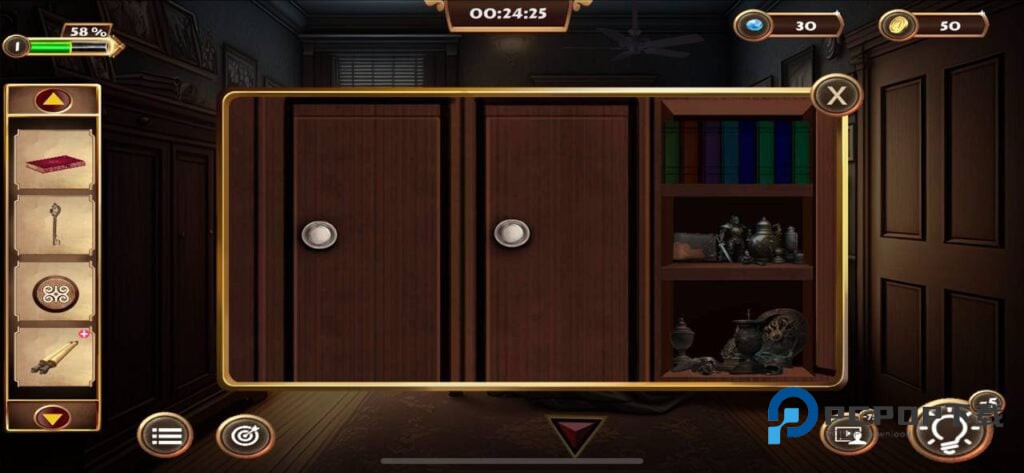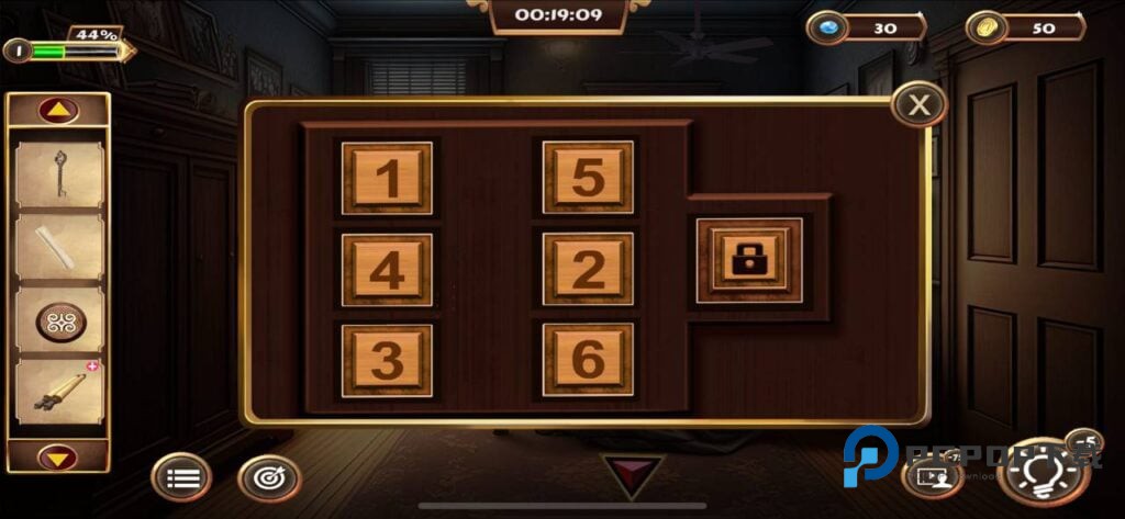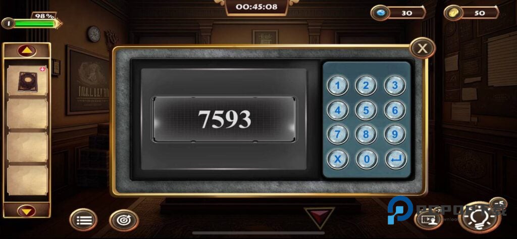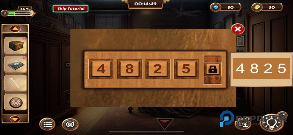 一旦你找到秘密钥匙,点击并拾取右侧门旁架子上的小盒子。通过物品栏菜单打开这个盒子,然后输入4位密码“4825”。