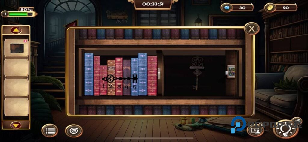 从盒子里取出书,然后点击房间右侧沙发旁的书架。打开书架,从你的物品栏中添加三本缺少的书来填补空缺。按照“1-2-3-4-5”的顺序旋转书架上的书,即可解开谜题。