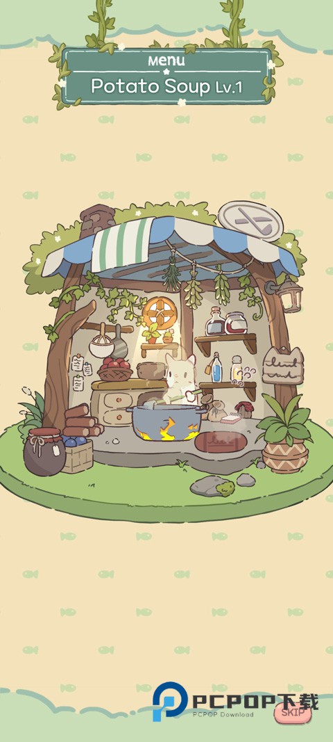 1、打开猫咪和汤魔法食谱,游戏需加速器启动,进入游戏如图,点击屏幕下方按钮开始;