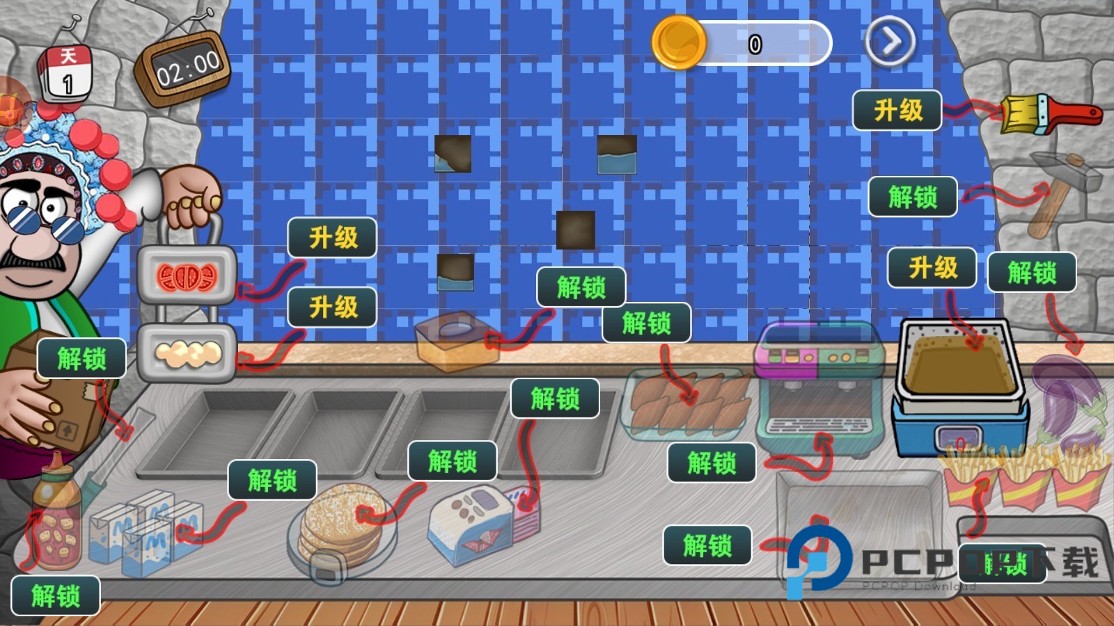 1、升级器材:提升食物加工机器和食材等级能够提升制作速度,以此来提升金币收益。